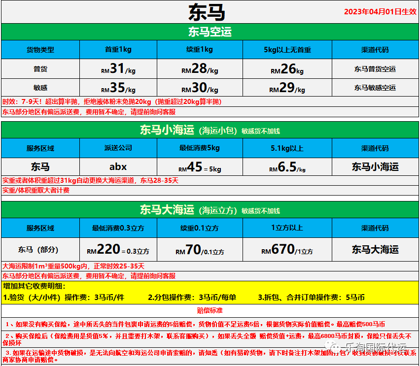 东马运费报价
